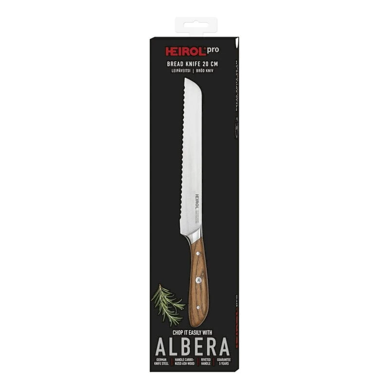 The Heirol Albera bread knife is a beautifully designed kitchen knife with a lovely, traditional wooden handle. The knife is ideal for slicing bread that is crispy on the outside and soft on the inside.