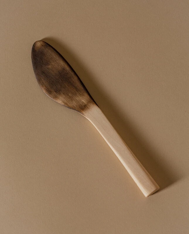The Voi knife, made of maple wood, is a minimalist version of a traditional wooden butter knife. Designed by Yoshimada Yomada, the Voi butter knife is ideal for spreading butter on bread, but also spreads cream cheese, jams, peanut butter and hummus smoothly and easily with its maple blade. The beautiful partly darkened surface of the spatula is achieved by charring it – this is a traditional Japanese finishing method and surface treatment for wooden products. The name of the knife, Voi, means butter in Finnish.