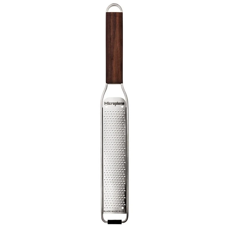 Microplane’s Master Series Zester can be used for zesting hard cheese, ginger, chocolate, nutmeg and truffle into a fine zest. The beautifully crafted handles of the Master Series are made of American walnut, and the non-slip rubber ends give the graters extra stability. In 2017, the Master Series graters won the Red Dot Award.